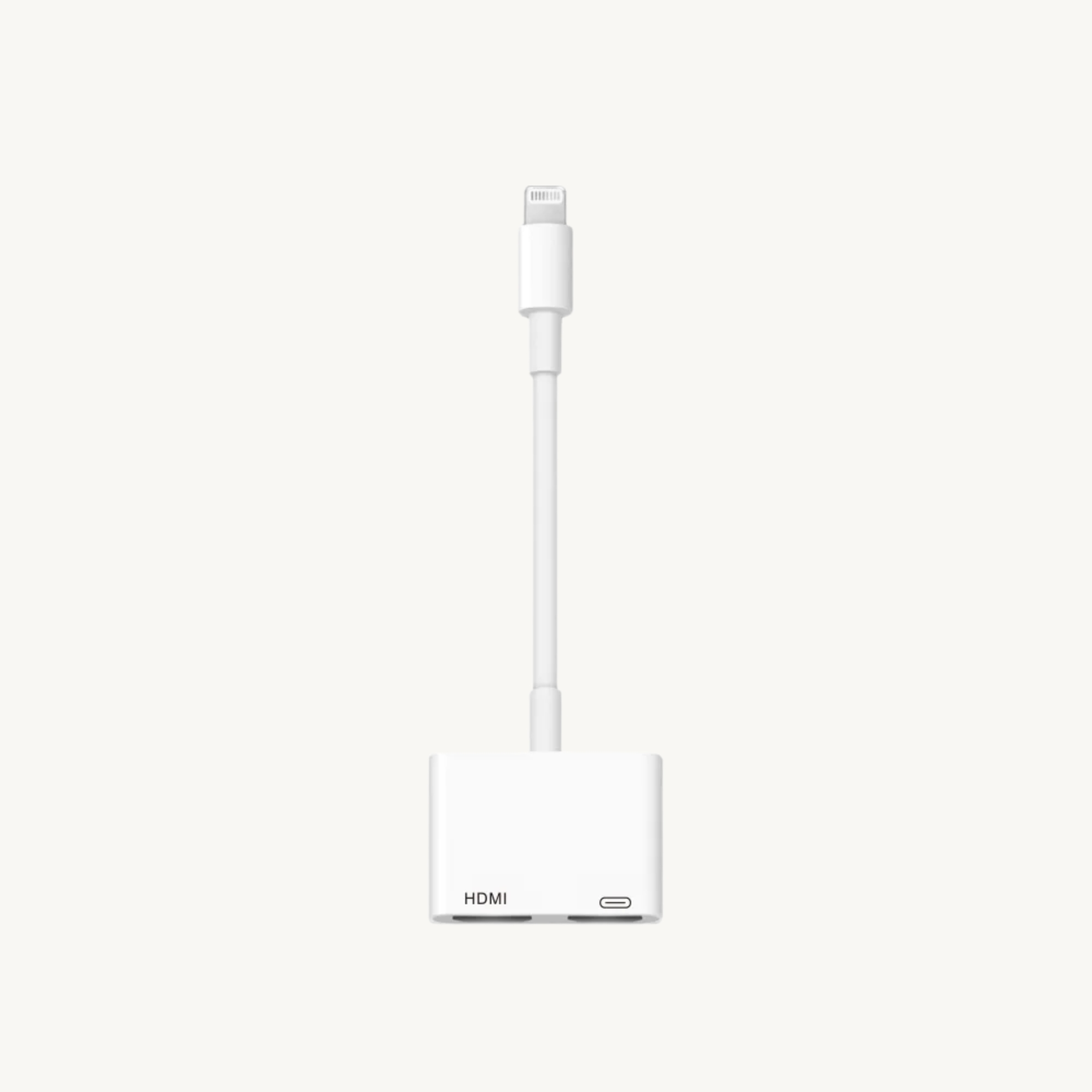 Use o Adaptador de Lightning para AV Digital com o seu iPhone, iPad ou iPod com conector Lightning. Com ele, você espelha o conteúdo da tela do seu dispositivo, inclusive apps, apresentações, sites e muito mais, em sua TV, projetor ou outra tela com HDMI em HD até 1080p. Ele também transmite conteúdo de vídeo, filmes, programas de TV, vídeos gravados, para o seu telão em até 1080p HD. Basta conectar o Adaptador de Lightning para AV Digital no conector Lightning do dispositivo e, em seguida, na TV ou projetor usando um cabo HDMI (vendido separadamente). Requisitos do Sistema Requer cabo HDMI (vendido separadamente) para conexão com a sua TV ou projetor. Oferece suporte a saída de áudio e vídeo.