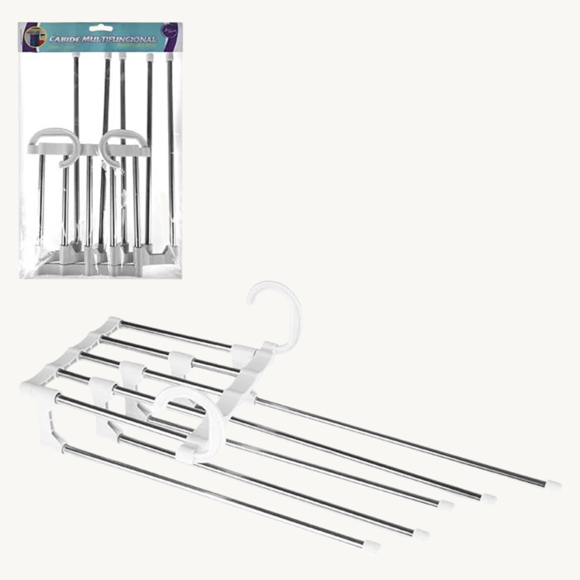 A multifuncional calça rack é adequada para pendurar calças, gravatas, roupas e cachecóis.