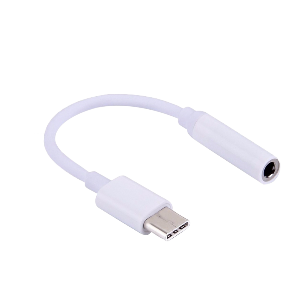 Adaptador com conector USB-C (Type C) Macho e P2 3.5mm fêmea, exclusivo para ouvir músicas e atender ligações via aparelhos com conexão P2.