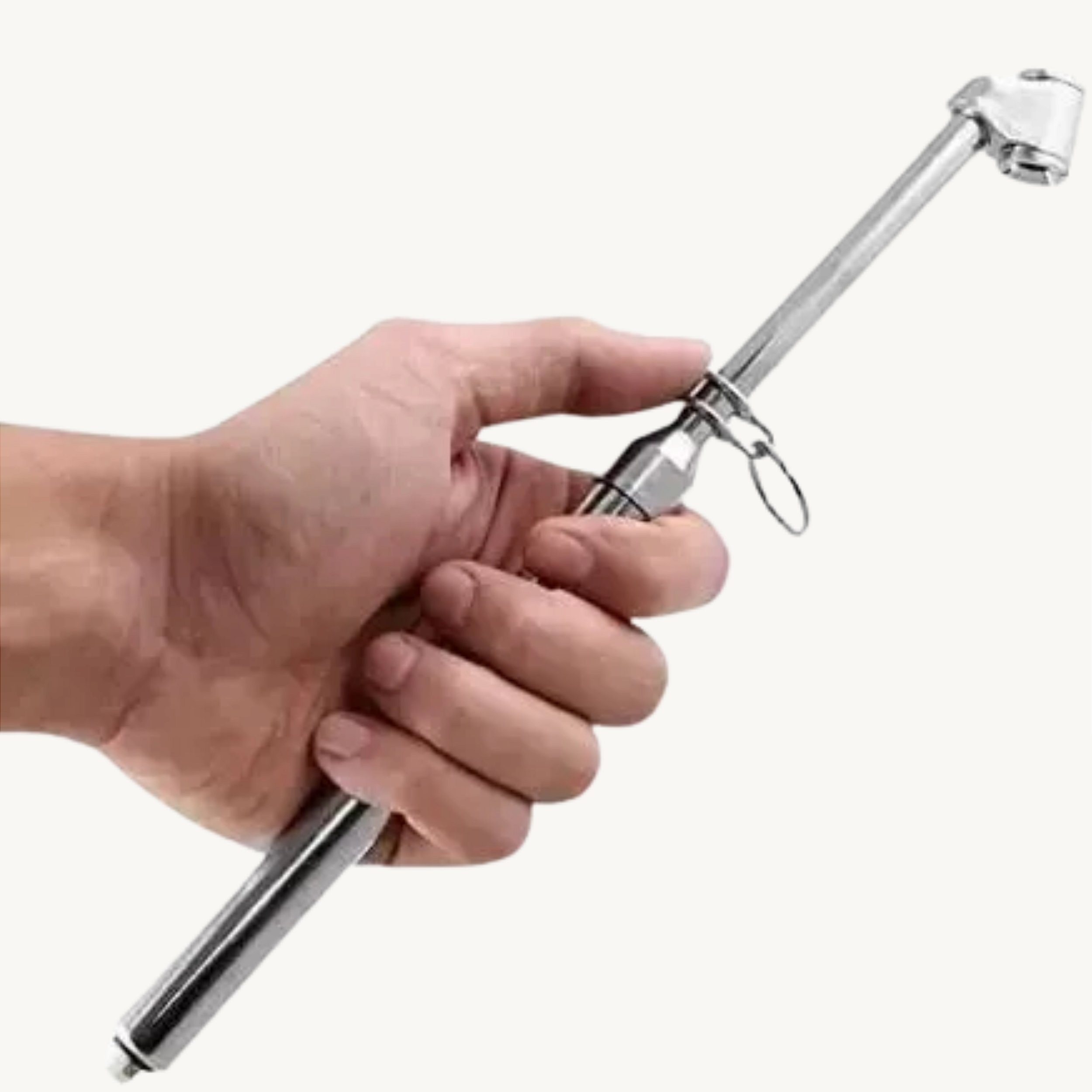- A cabeça do calibrador alcança a válvula do pneu em todas posições.