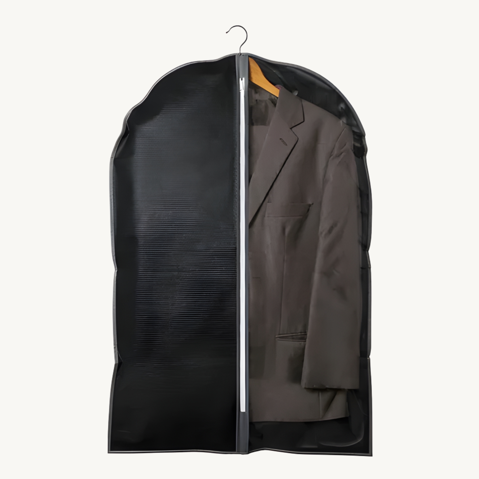 Anti umidade, anti mofo, além de proteger o tecido contra poeira. Feita em TNT, com zíper para abertura e visor transparente para visualização da roupa.