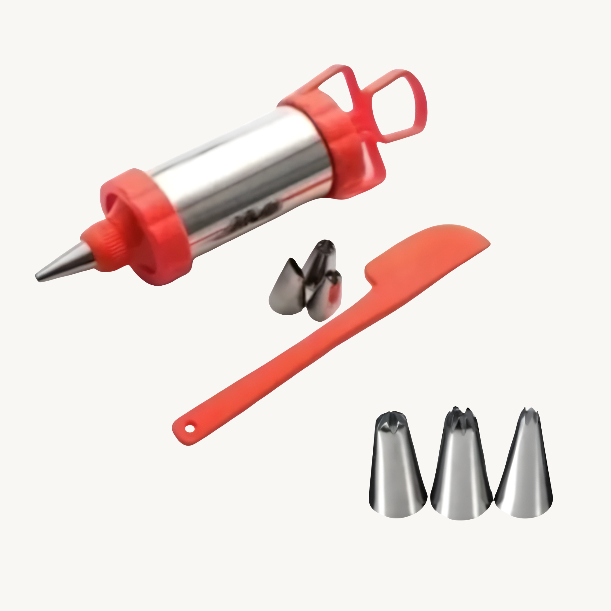 PISTOLA CONFEITAR BICO DECORAR SOBREMESA BOLO CUPCAKE TORTA DOCE CONFEITEIRO COZINHA Kit Confeiteiro com pistola plástica para confeitar, 4 bicos para decorar sobremesas (bolo, cupcake, torta, doces em geral) e espátula. Fácil e prático, basta inserir o creme na pistola e escolher o bico desejado, perfeito para o preparo de sobremesas em geral. Solte sua imaginação decorando pratos para toda sua família. Ideal para decorar bolos, cupcakes, tortas e doces em geral. Especificações do Produto: - Dimensões aproximadas da pistola com o bico: 21cm x 5cm (altura x diâmetro); - Dimensões aproximadas da espátula: 19cm; - Cor dos bicos: prateado; - Embalagem com 1 (uma) pistola de plástico para confeitar, 4 (quatro) bicos para confeitar e 1 (uma) espátula. Itens Inclusos: - 1 (uma) Pistola de plástico para confeitar; - 4 (quatro) Bicos para confeitar; - 1 (uma) Espátula.
