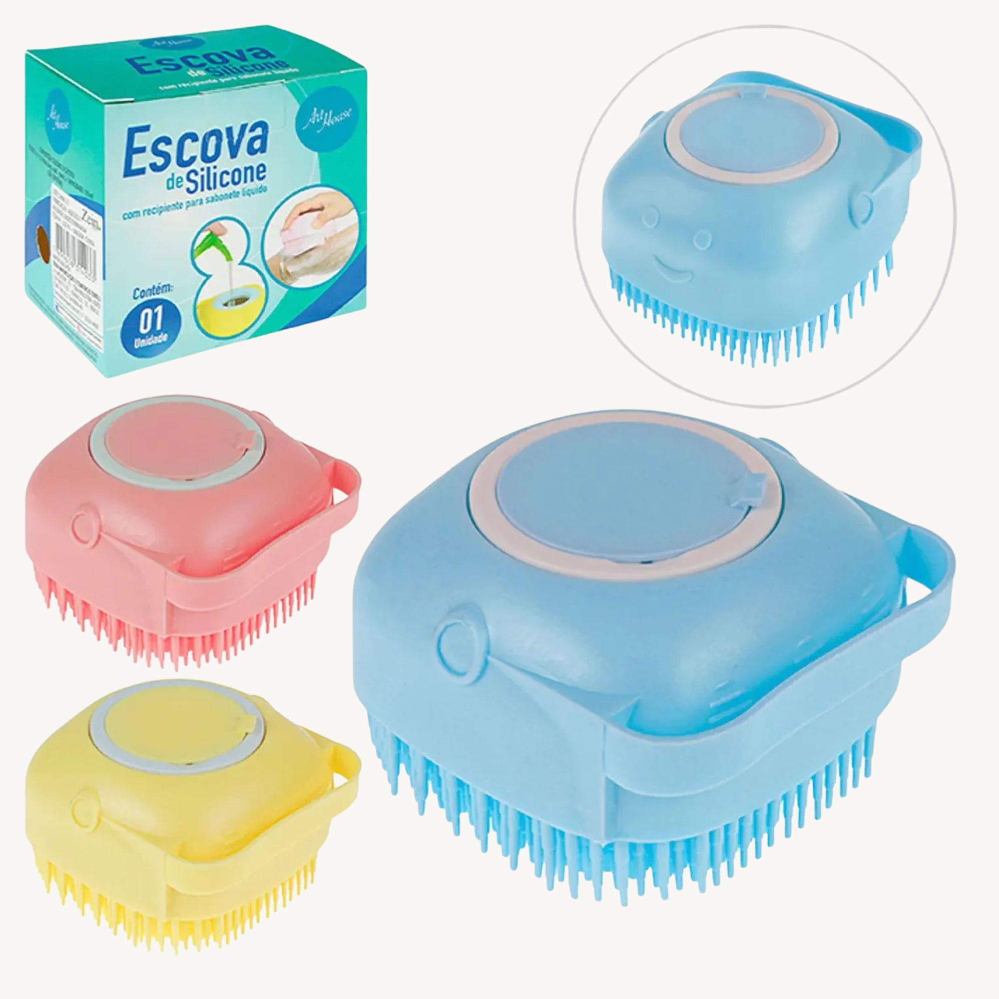 Escova de Banho De Silicone Com Dispenser P/ Sabonete Shampo