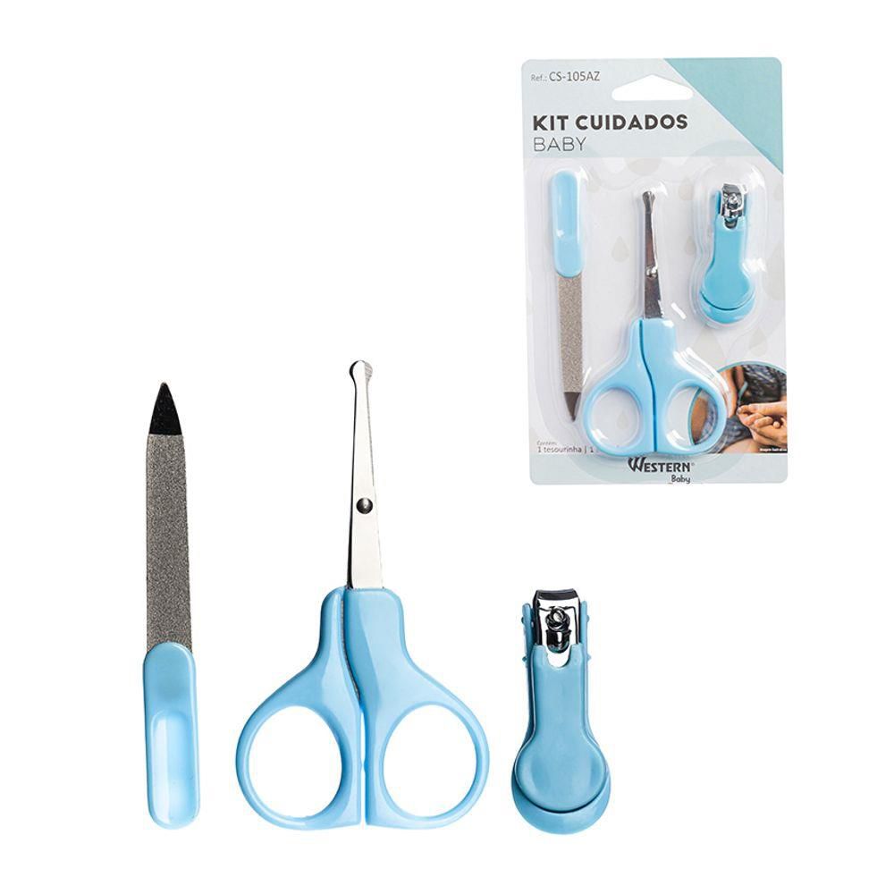 Kit Higiene Bebê Menino Menina Tesourinha Cortador de Unha e Lixa AZUL - WESTERN BABY CS-105AZ