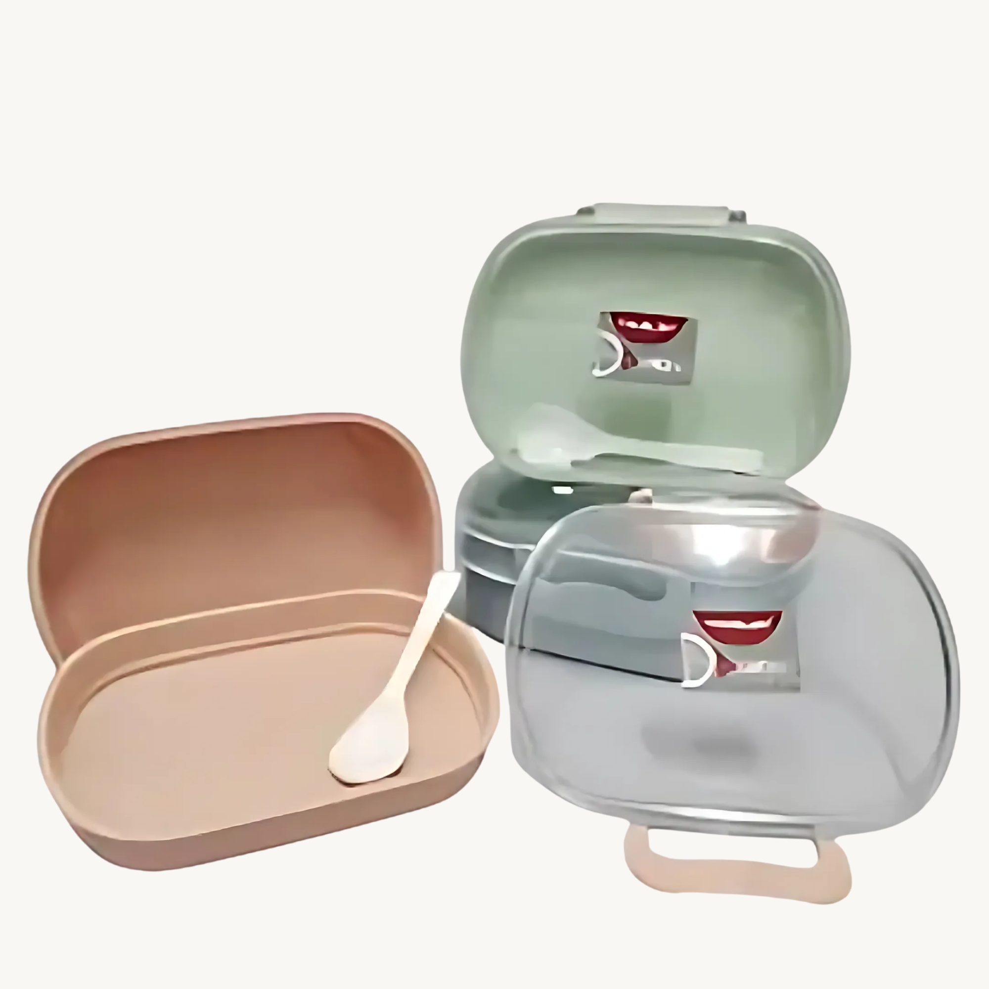 Marmita Com Divisórias e Colher mais trava nas laterais.
