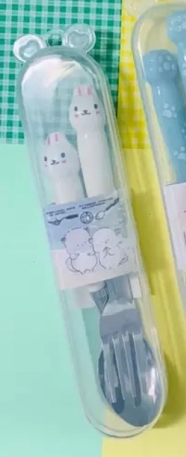 Garfo, colher e estojo transparente bichos Versátil.